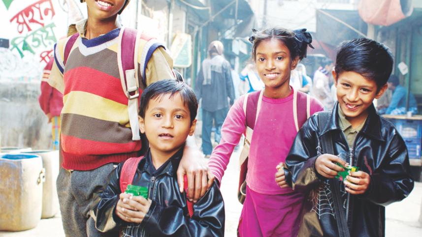 In rural areas, the bucolic aspect dominates: the kids jumping across a narrow stream one at a time, walking along narrow ails of rice paddies, or soaking merrily in a field during a sudden downpour on the way home. In Dhaka, though many children use private or public transportation to get to school, others walk to school, particularly in old Dhaka and outlying neighbourhoods such as Badda. They, too, enjoy their walk to school in an urban setting.