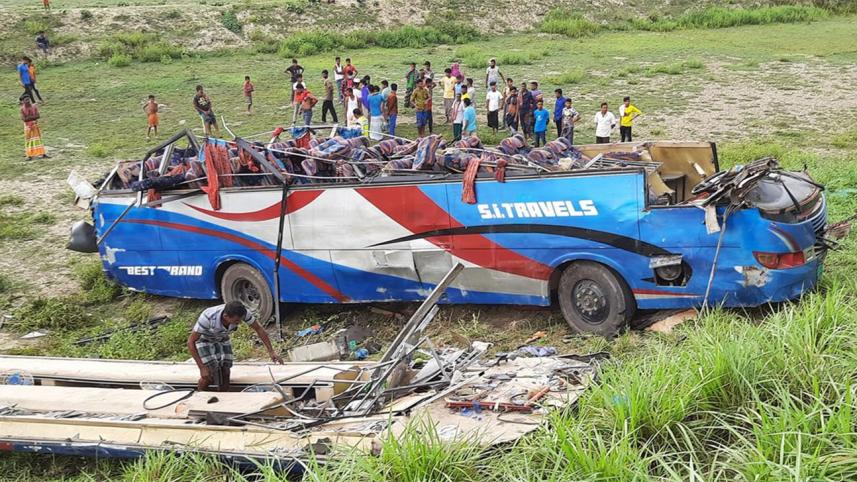 Officer-in-Charge of Bangabandhu Bridge East Side Police Station Shafiqul Islam said the Dhaka bound bus which started from Bogura fell into a roadside ditch after the driver lost control.