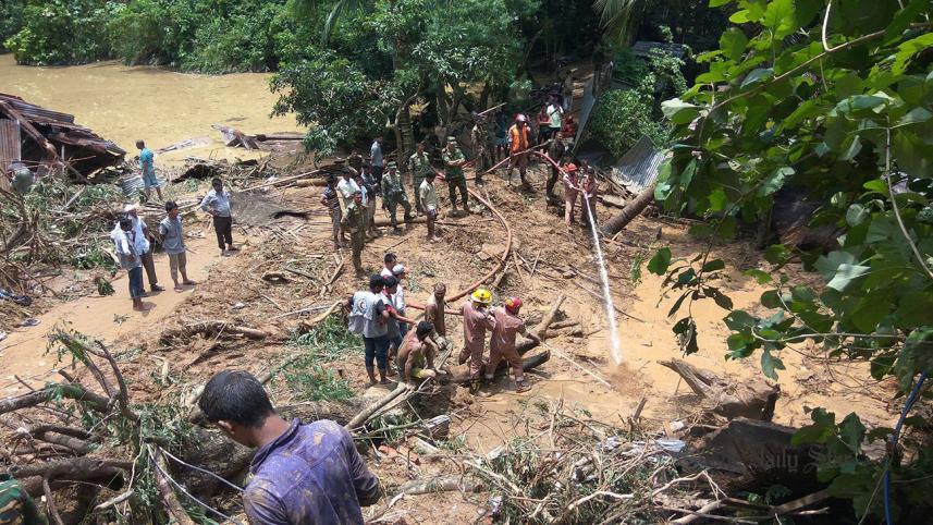 In Bandarban, missing Kamarunnesa Begum, 45, and her daughter Sukhiya Begum, 12, were found under the landmass in Sadar's Lemujhiri area, said fire service officer Md Tariqul Hassan.