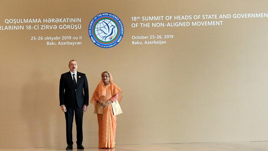 On her arrival at the centre at 10 am, Sheikh Hasina was received by the Azerbaijan president.