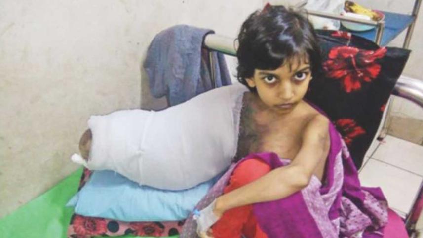 Twelve-year-old girl Muktamoni who was diagnosed with a tumor in her right hand underwent her fourth “successful” surgery at Dhaka Medical College and Hospital on Sunday, October 8, 2017. Star File Photo.