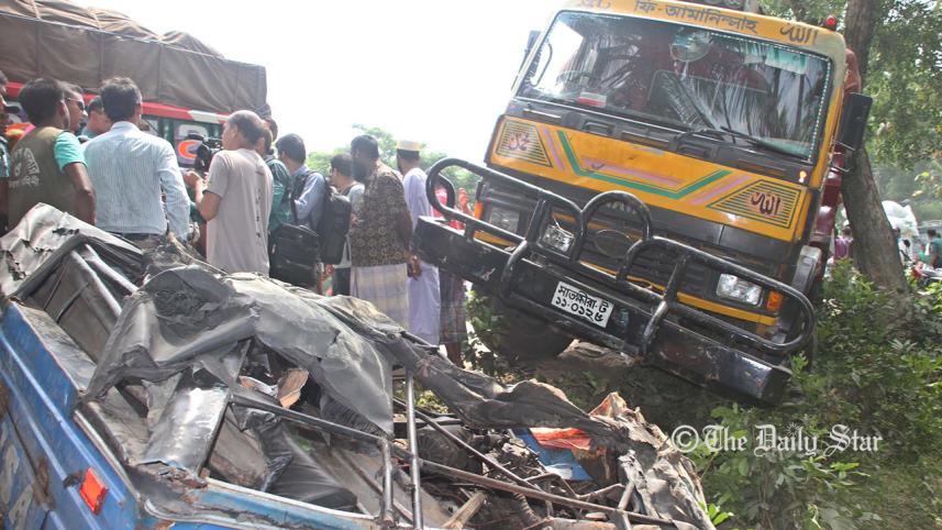 The accident caused a gridlock on the Dhaka-Barisal highway for about one and half hours, police official Pradip Mitra said.