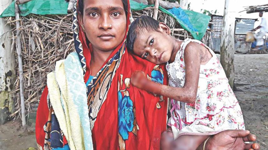 According to Dr Shah Md Ismail Hossain, the dermatologist consultant who examined the girl at M Abdur Rahim Medical College and Hospital in Dinajpur, Mahmuda requires medicine costing around Tk 1,000 per month, which is quite out of reach for a father earning a meagre Tk 300 per day.