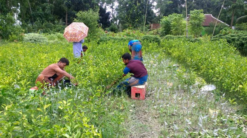 Sohel Rana, a Naogaon-based farmer, said, “Last year I got saplings of three types of pomegranate, purple passion fruit, two verities of seedless persimmon, seedless guava, two types of Malta, seven verities of mango from Bahadur bhai.”