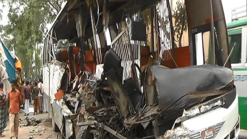 The accident took place when the Panchagarh-bound 'BS Paribahan' bus collided with the truck, leaving four people, including the bus driver and a minor, dead on the spot and 15 people injured, said Akhteruzzaman, officer-in-charge of Gobindaganj highway police.
