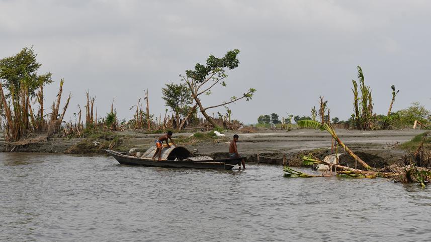 "Last year there was a bigger flood but it lasted only a few days and caused no river erosion. As a result, we could save our farmland and home. This year, the scenario is completely different. We lost everything this time," said Shahjahan Ali (35), another erosion victim of village.