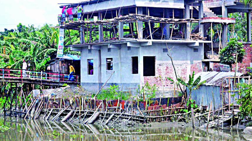 Contacted, Ibrahim Faruque said, "I bought 4.25 decimals of land from some Sanu Sikder who had got it as allocation from the government. I am building the structure on my land comprising both purchased land and my father's property."