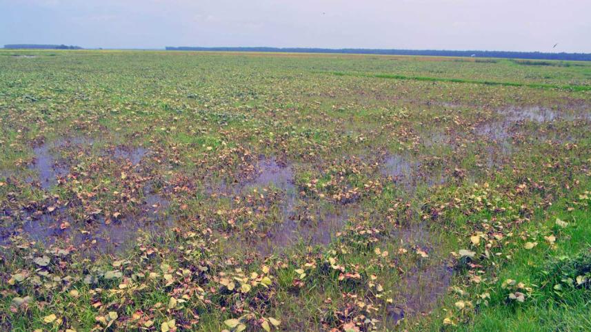 But due to lack of a protection embankment, tidal water from nearby Tentulia River entered the farm, forcing the authorities to collect potato early.