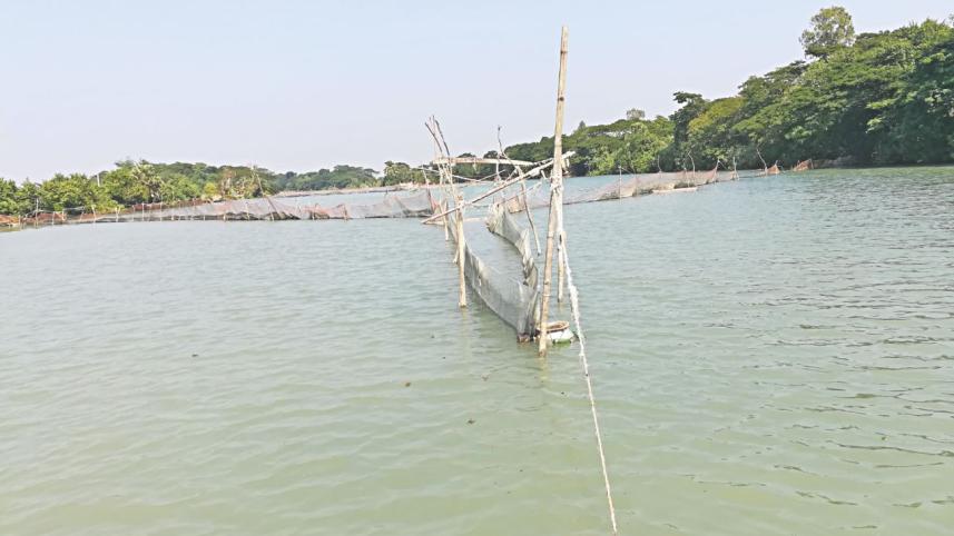 The fishermen have placed their nets on the canal that flows through two unions in the upazila, connecting the Nilganj river under Kalapara upazila in the south and Payra river in the north.