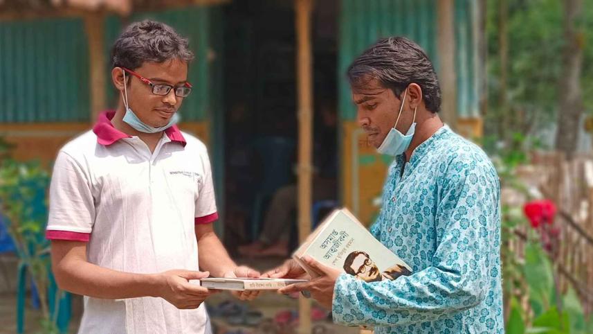 As lesser number of readers are frequenting his library due to the coronavirus situation, Jamal Hossain, the founder president of Sarpukur Youth Forum Library, is going to readers' doorsteps with bagful of books.
