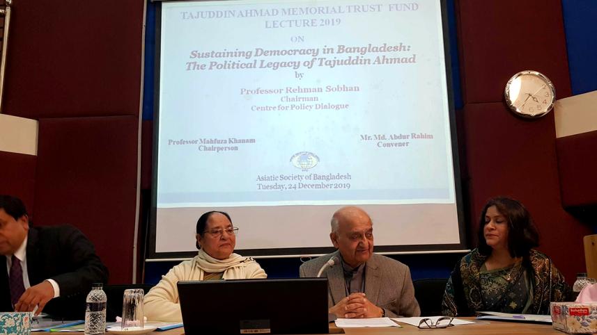 Prof Rehman Sobhan was delivering a lecture on “Sustaining democracy in Bangladesh: The political legacy of Tajuddin Ahmad”. Asiatic Society of Bangladesh organised the lecture at its office in Dhaka.