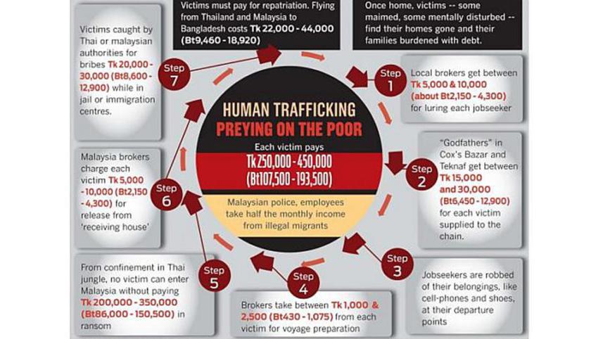 In November last year, Daily Star interviewed eight trafficked victims at home and in Malaysia, plus six union chairmen from Cox's Bazar's coastal area and several rights activists to get an idea of the trade. The figures they provide are staggering: