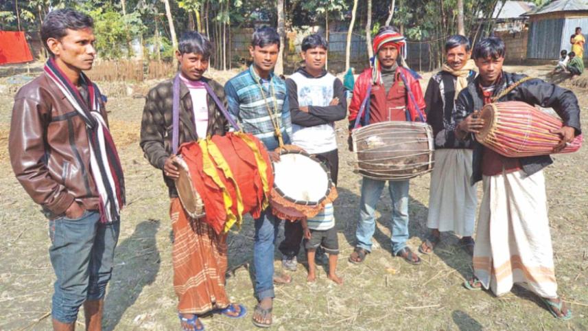 They use various types of instruments such as, locally called dhak, dhol, khol, kashi, karka, big-drum, side-drum, 7-set, flute, harmonium, shanai, jhumur, juri and so on. At least 110 people of 34 families of Malee community live in Hari Para (Malee Para) of Belgachha union under Kurigram Sadar upazila. Gaynath Chandra Malee, 52, said, "We cannot earn in other ways besides playing drums. Our income has become limited. We would like to earn in other ways but we do not receive any support from any government organization or NGO." Atul Chandra Malee, 27, said, "We need a burning spot (Shashan) as over 110 of us live on 35 decimals of land. Beside Kurigram-Rajarhat road in Hari Para (Malee Para), we have a Debattar land of around 20 decimals which has been grabbed illegally by a local influential person."