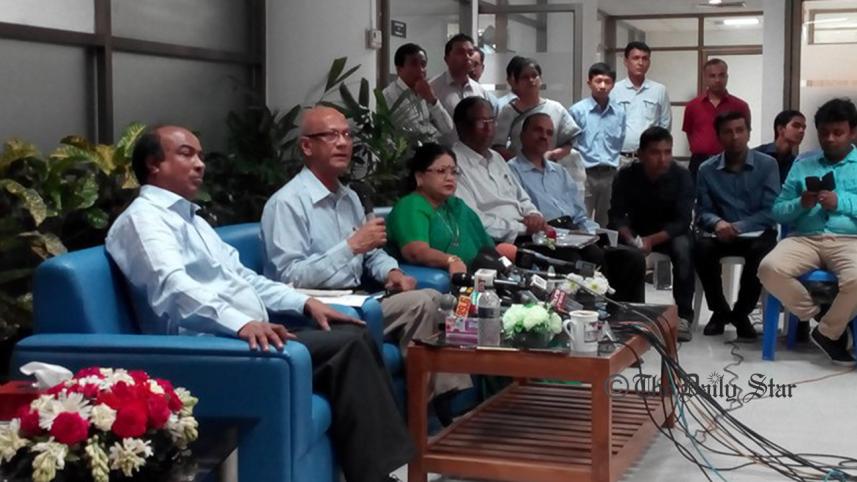 Wielding the banner of Federation of Bangladesh University Teachers' Association (FBUTA), the teachers stood for an hour in chain near Oporajeyo Bangla from 11:00am.