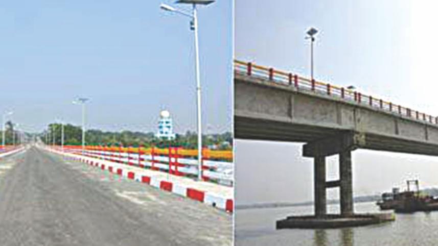 Construction works of the 482.37-metre-long and 10.25-metre-wide Shaheed Sheikh Jamal Bridge on the Sonatala River at Hazipur point and 891.76-metre-long and 10.25-metre-wide Shaheed Sheikh Kamal Bridge on the Andharmanik River near Kalapara upazila town were completed in December last year.