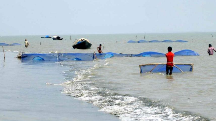 During a recent visit to Kalapara and Galachipa in Patuakhali, and Taltali, Amtali and Pathorghata in Barguna districts, this correspondent found hundreds of fishermen catching fry with current nets and mosquito nets in different areas of the Bay and adjoining rivers including Ramnabad, Nishabaria, Payra, Biskhali, and Boleshwar.