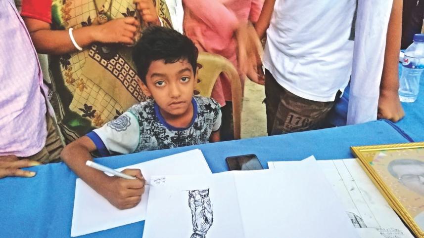 “After noticing his sketching skills, I felt the urge to expose his skills in the in the public sphere. So, we arranged a two-day-long solo exhibition for him in the Baishakhi Mela,” he said.