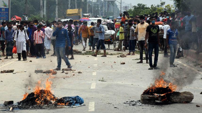 Today, several hundred workers of 4-5 factories took to a street at Zirani of Kashimpur area in Gazipur and started demonstrating amid the countrywide shutdown, our Savar correspondent reports.