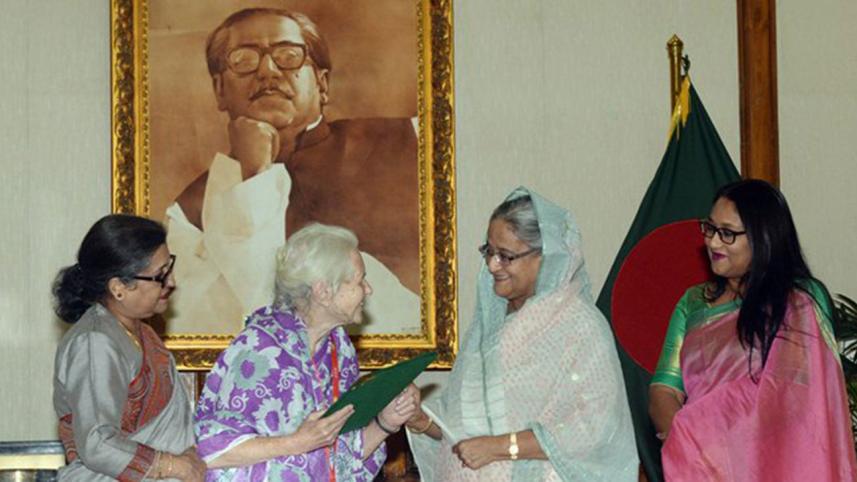 Prime Minister Sheikh Hasina handed over the citizenship certificate to 87-year-old Lucy Helen at a function at her official residence Ganobhaban.