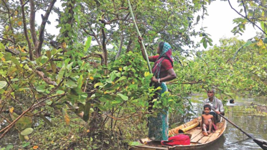 If you ever go to a floating market at Bhimruli village in Jhalakathi, you will see the 35-year-old woman rowing a boat loaded with guava with her visually impaired husband Sumontho Samadder.