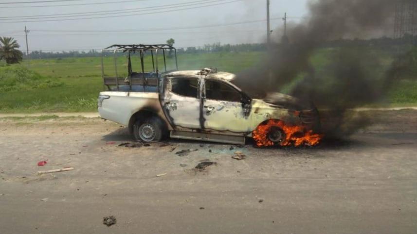 Tailback on Dhaka-Tangail Highway: Magistrate’s car set on fire