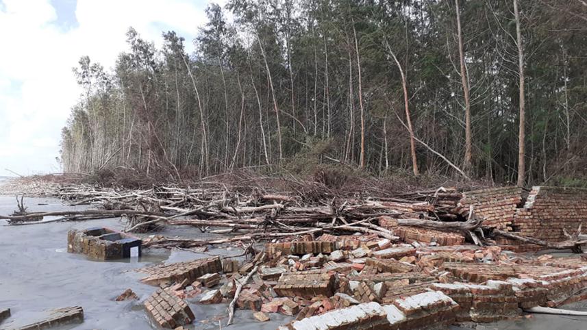 The onslaught of super cyclone Ampan on May 20 wrought havoc to the large tamarisk plantation in Shuvoshandhya beach, a tourist spot in Barguna's Taltoli upazila, uprooting about 25,000 trees on 10 hectares of land and damaging the road connecting the spot.