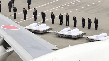 Bodies of the seven Japanese nationals who were killed in a militant attack at Holey Artisan Bakery in Bangladesh capital Dhaka return to home soil Tuesday morning.