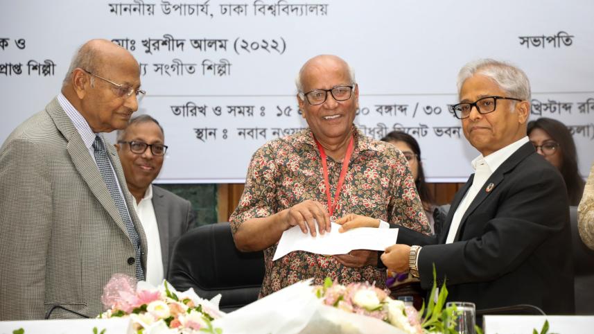 Today, iconic singer Khurshid Alam was honored with the prestigious Feroza Begum Memorial Gold Medal for the year 2022. The grand ceremony took place at the Nabab Nawab Ali Chowdhury Senate Bhaban, in University of Dhaka.