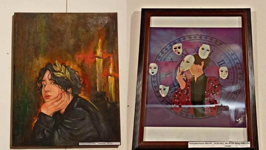 Recently, two Bangladeshi artists, Fahmida Yeasmin Ripa and Mehjabin Hasan Mourin, painted BTS members Jungkook and Taehyung, for an art exhibition titled "Way to Artistry Dream" at Bangladesh Shilpakala Academy (BSA).