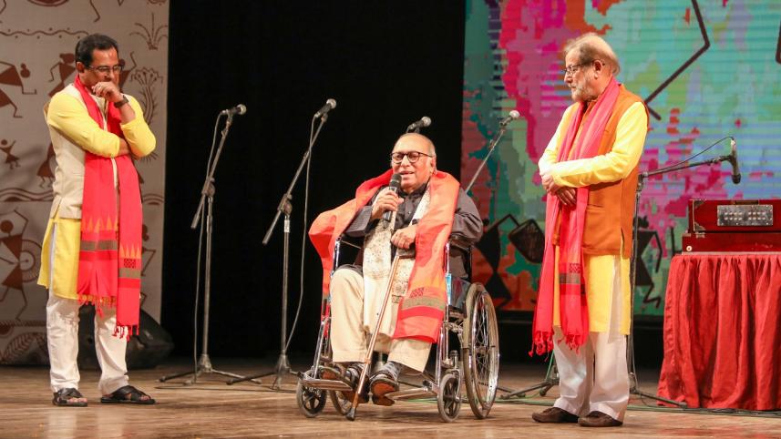 Masud Ali Khan is a beloved name in the television industry. Yesterday, the 93-year-old actor was felicitated with the Khaled Khan award at the Aly Zaker Notuner Utshab, which took place yesterday.
