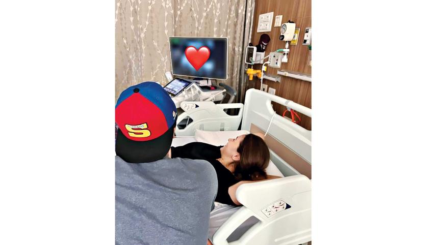 Alia Bhatt shared pictures from the hospital where she and Ranbir Kapoor are looking at the sonogram of their baby. They captioned the photo "Our baby ….. coming soon."