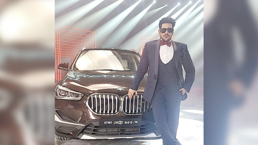 He was seen posing with a BMW car wearing his signature outfit, black blazer with a red bow tie.