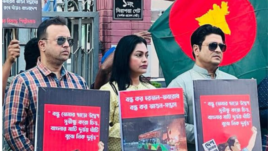 Numerous artists came together to form a human chain, urging an end to the ongoing strikes and blockades in the country. On a Saturday afternoon, in front of the National Museum in Shahbagh, they created a united front under the banner 'Society of Artists Against Destruction.' The human chain comprised of actors, actresses, heroes, singers, and various other personalities from the showbiz industry who actively participated in this initiative.