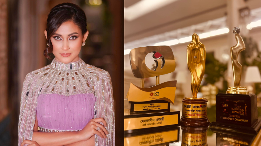 The talented and gorgeous Mehazabien Chowdhury is on a winning spree as she won three awards within 24 hours, yesterday.
