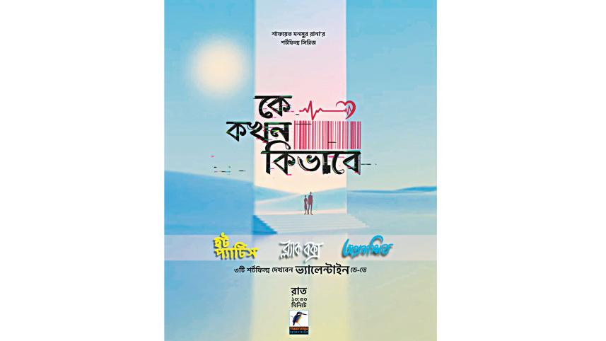 Director Shafayet Mansoor Rana is coming up with short film series on the occasion of the Valentine's Day. The series, titled "Ke Kokhon Kibhabe" includes three short films-- "Hot Patties" featuring Salman Mohammad Muqtadir and Sabila Nur, "Black Box" featuring Yash Rohan and Samira Khan Mahi, and "Oprokashito" featuring Irfan Sajjad and Tasnia Farin in the lead roles.