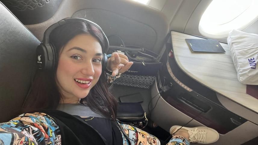 The "Laal Sari" actress announced the news on her Facebook wall. The actress posted a selfie where she was seen riding first class to Los Angeles.