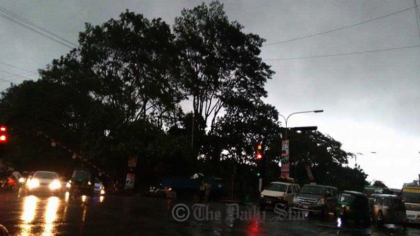 A downpour this morning brought respite to life in Dhaka from the searing heat that has been prevailing for the last few days.