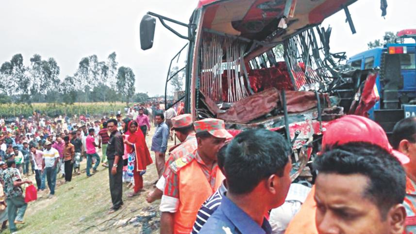 The crash around 10:40am happened when the coach heading for Thakurgaon from Comilla collided with the bus heading for Rangpur from Dinajpur at Teromile area on Rangpur-Dinajpur highway.