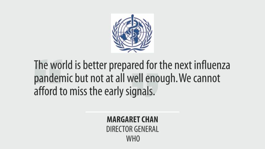 WHO DG Margaret Chan said on Monday that the world is better prepared for the next influenza pandemic, following the one that circled the world in 2009-10, "but not at all well enough."