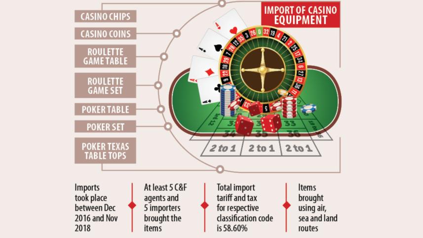 Ahsanul Azim, proprietor of A3 Trade International, told The Daily Star, that his company imported three “poker sets” and “roulette sets” through Benapole in November 2017.