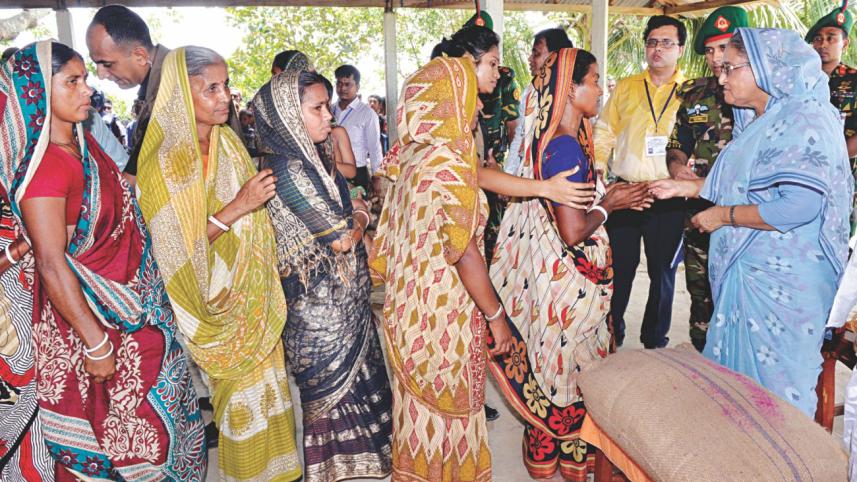 Hasina went there to see for herself the flood-affected areas where Boro crops on over two lakh hectares of land were damaged, causing a colossal loss to the livelihood, fish and livestock of farmers.