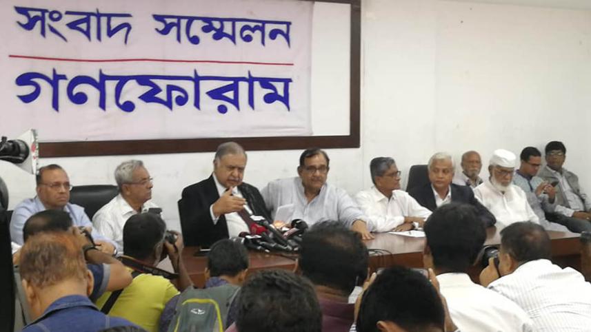 For a free and fair election, the Gono Forum president put forward seven conditions, including dissolution of parliament, resignation of the cabinet and formation of a neutral and non-partisan polls-time government in consultation with all political parties.