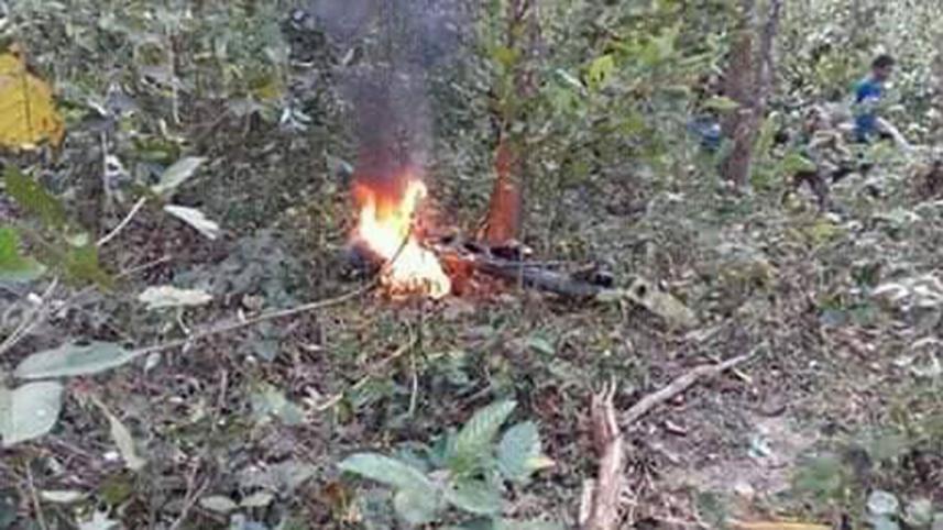The aircraft crashed in the Madhupur Sal Forest near BAF Firing Range in Rasulpur, and immediately caught fire, killing the pilot on the spot, Shafiqul Islam, officer-in-charge of Madhupur Police Station, told our Tangail correspondent.