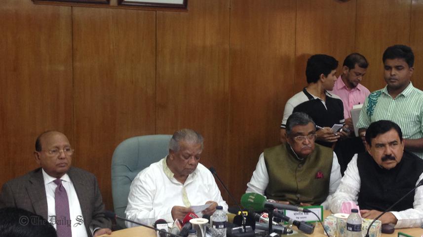 LGRD Minister Khandker Mosharraf Hossain, Information Minister Hasanul Haq Inu, Shipping Minister Shajahan Khan, Home Minister Asaduzzaman Khan Kamal, State Minister for Labour and Employment Mujibul Haque Chunnu and top officials of law enforcement agencies were at the meeting.