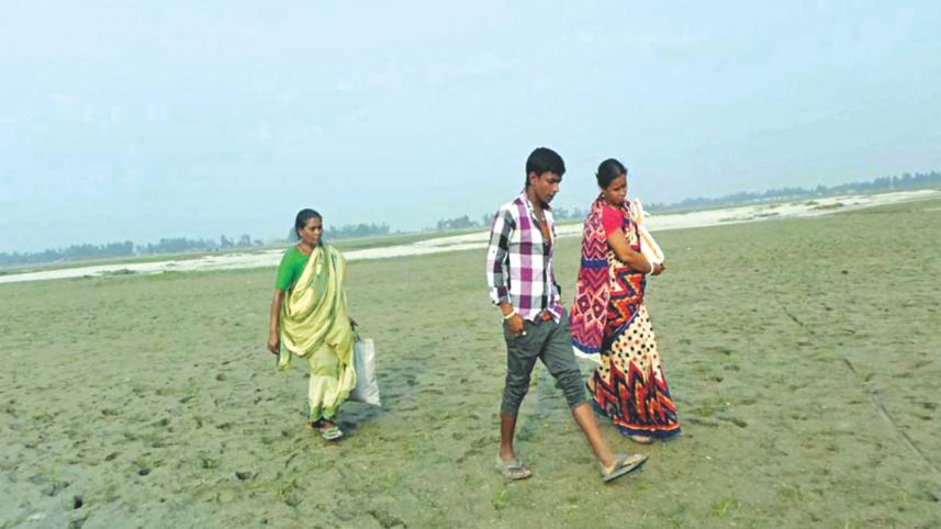 On the char areas, locals were seen walking to their destinations -- sometimes with their goods or food grains. Many were riding horse carts and motorcycles there, a scene unimaginable had not the river dried up.
