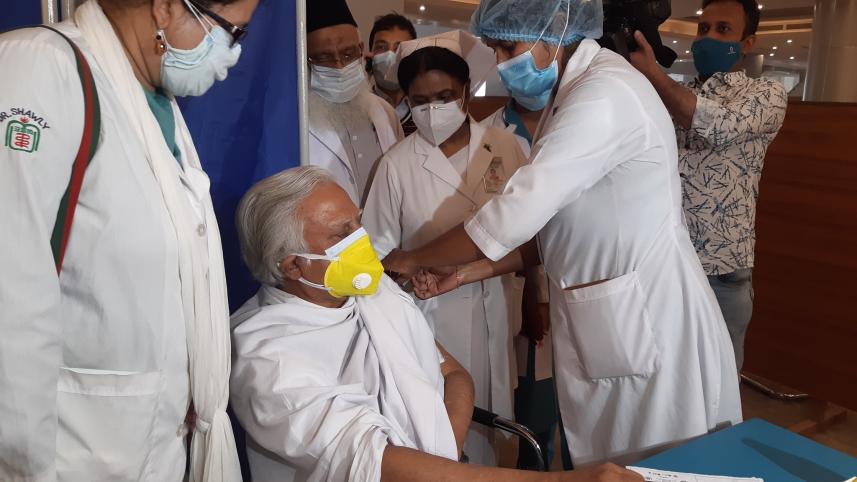Today, renowned columnist Syed Abul Maksud got inoculated at the BSMMU centre.