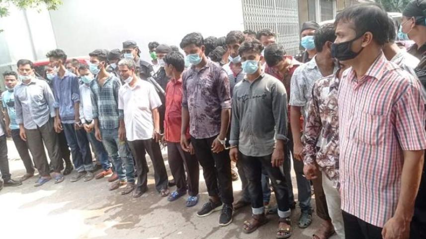 Around 1,000 arrestees, many seen without face masks, were taken to the Chief Metropolitan Magistrate's Court in Dhaka in prison vans on Wednesday and yesterday.