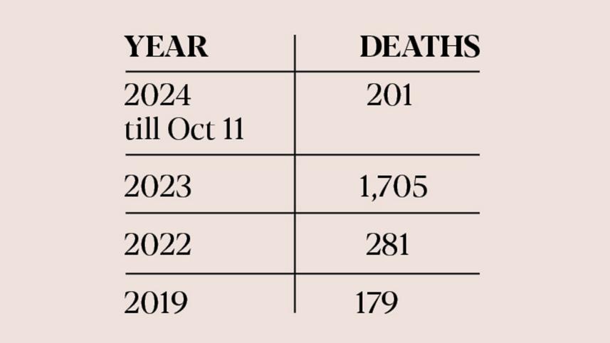 According to the Directorate General of Health Services, 1,705 dengue deaths occurred in 2023, marking the highest annual death toll to date. In comparison, there were 281 deaths in 2022 and 179 in 2019.