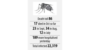 One more dengue patient died while 182 others were hospitalised in 24 hours preceding 8:00am today, of whom 41 are from outside Dhaka, according to the Directorate General of Health Services (DGHS).