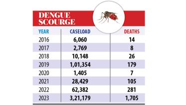 One more death was reported from dengue in 24 hours till this morning, raising the fatalities from the mosquito-borne disease in Bangladesh to 1,699 this year
